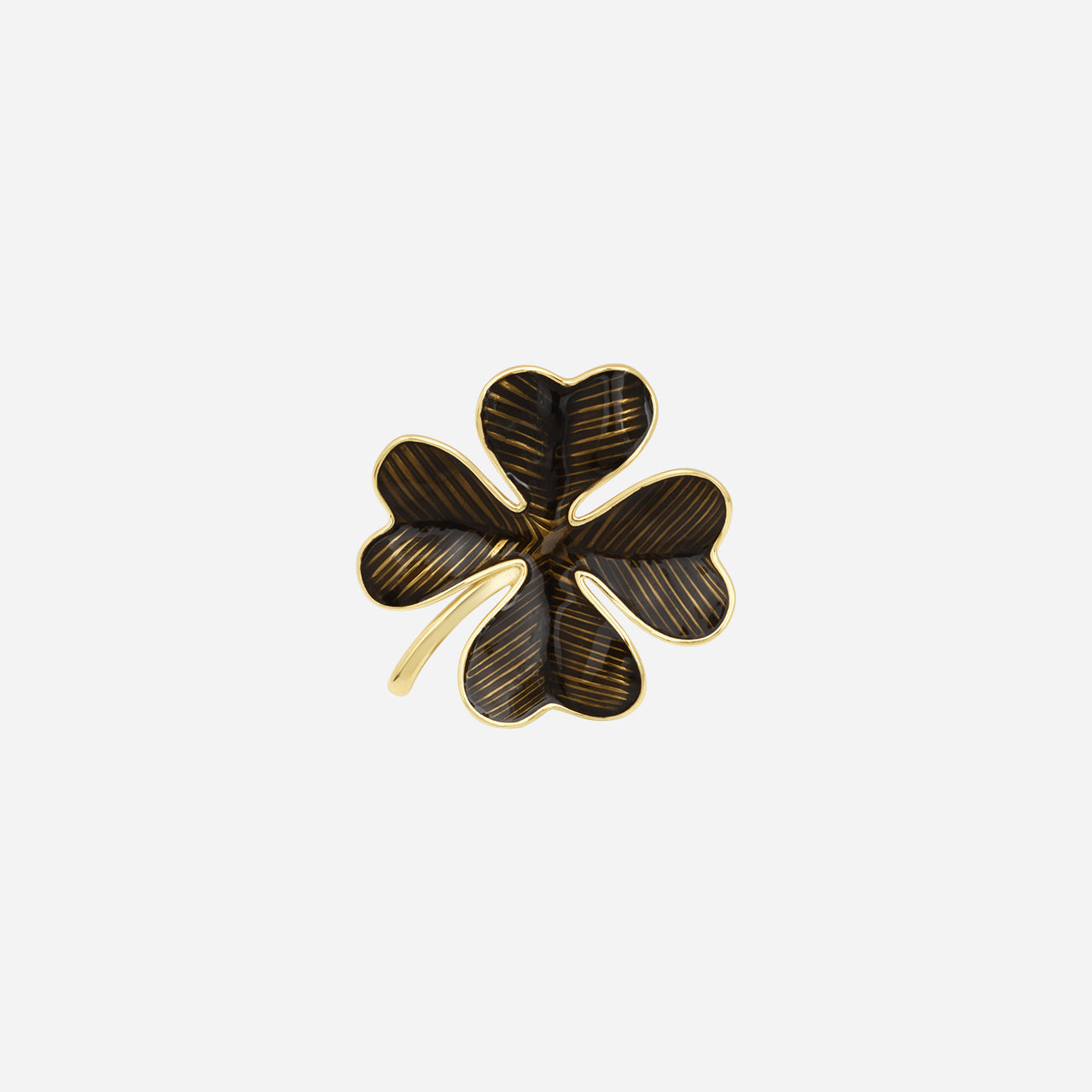 La broche Shamrock mesure 5cm de diamètre émaillée gris anthracite.
