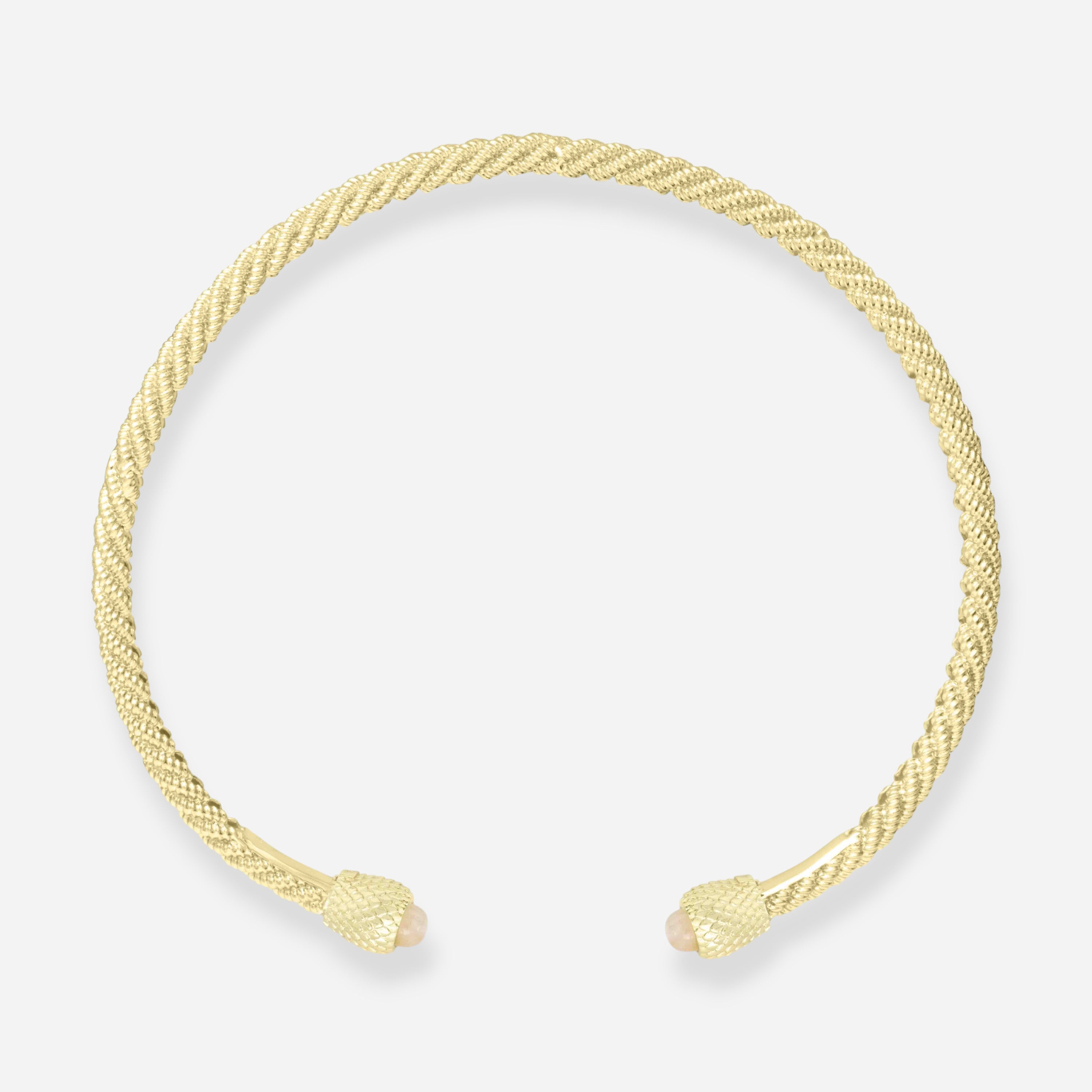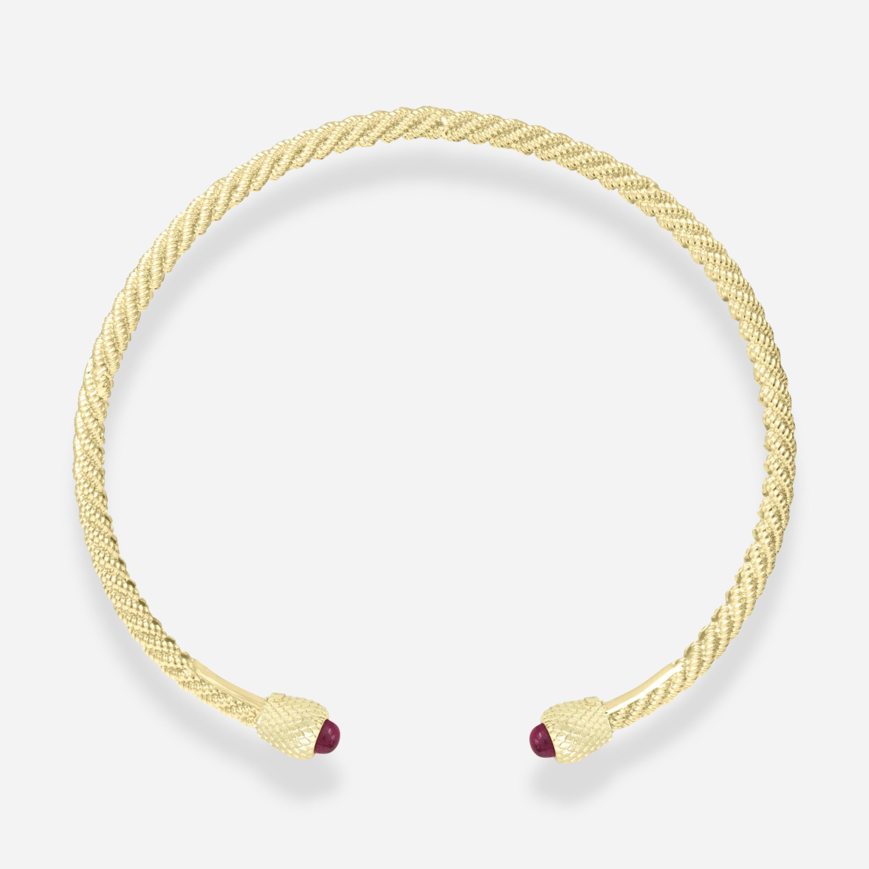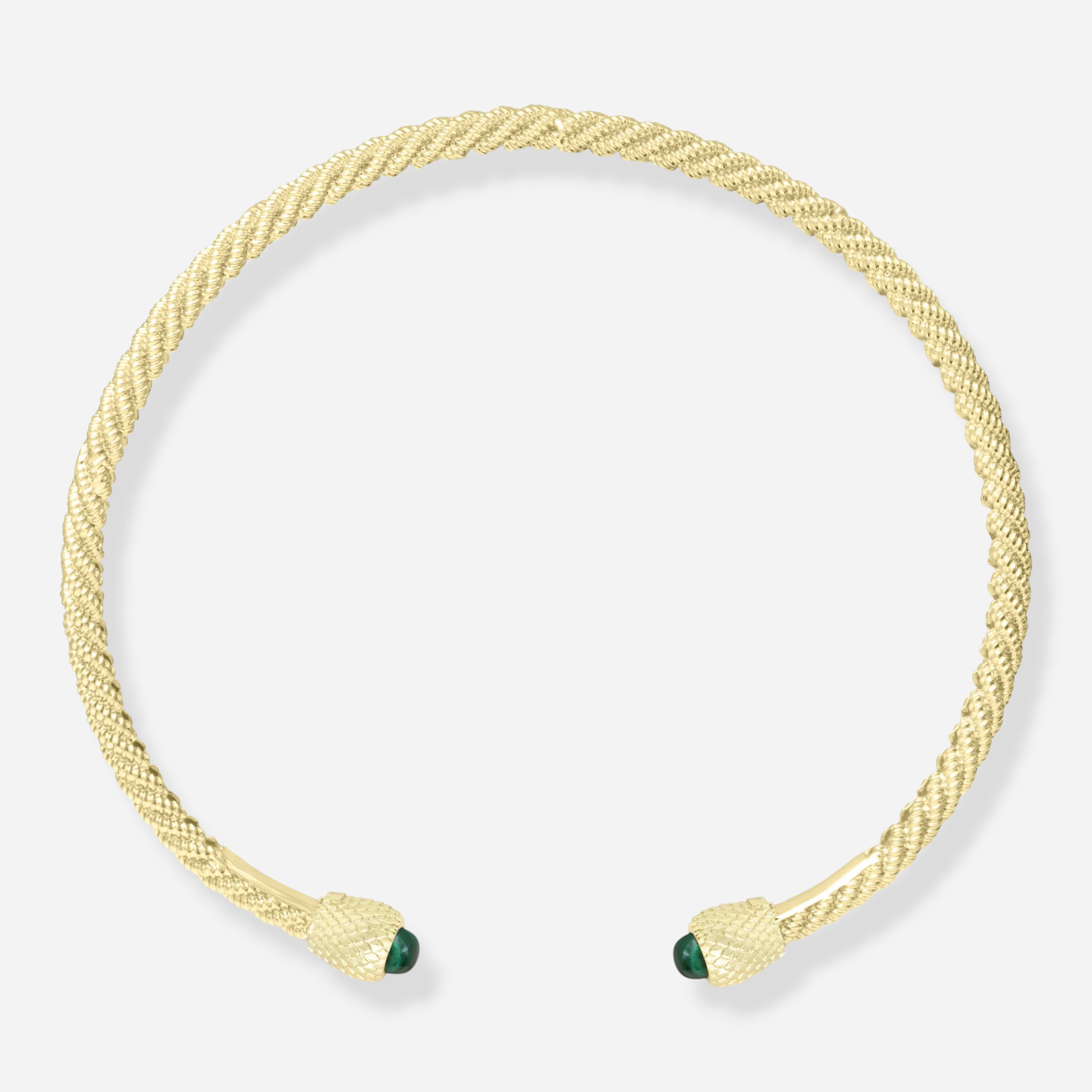 Le collier torque torsadé réglable Hydra est doté d'un système innovant et inédit. Chaque extrémité du bracelet se ferme par une tête amovible qui peut être changée à volonté et qui est maintenue en place par un système magnétique. Ce mécanisme révolutionnaire permet de changer facilement les têtes, créant ainsi un design unique et totalement personnalisable. La flexibilité du collier garantit un ajustement parfait, tandis que le système magnétique assure un maintien ferme et sûr.