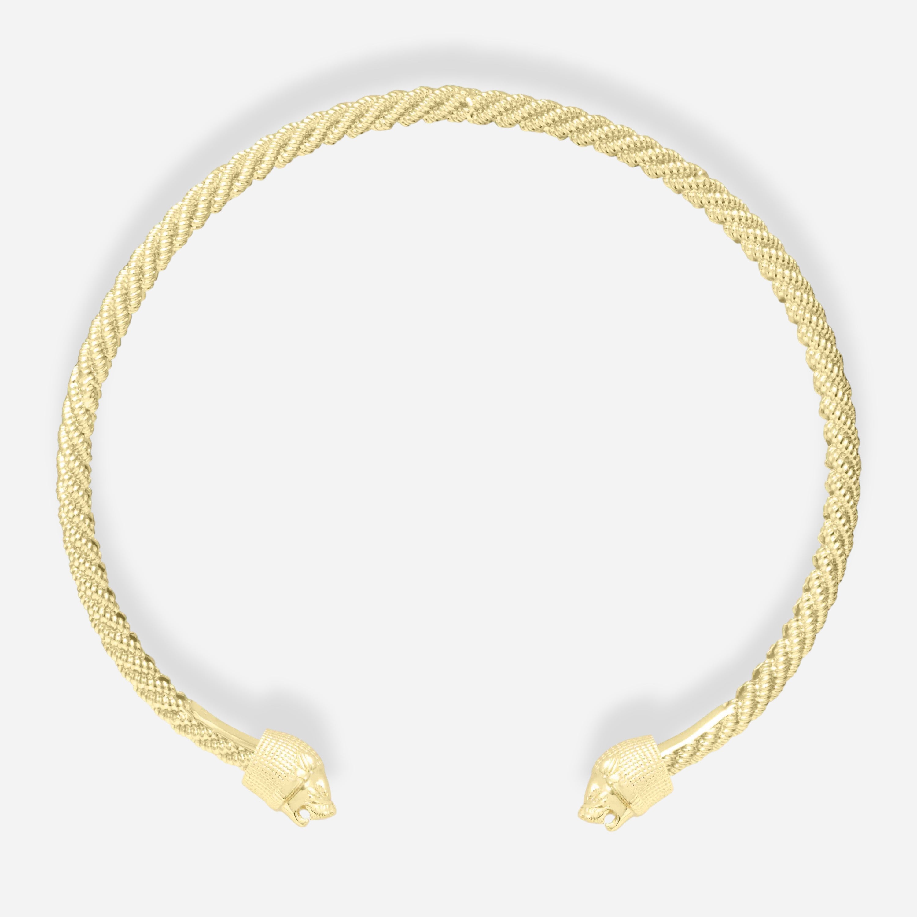 Le collier torque torsadé réglable Hydra est doté d'un système innovant et inédit. Chaque extrémité du bracelet se ferme par une tête amovible qui peut être changée à volonté et qui est maintenue en place par un système magnétique. Ce mécanisme révolutionnaire permet de changer facilement les têtes, créant ainsi un design unique et totalement personnalisable. La flexibilité du collier garantit un ajustement parfait, tandis que le système magnétique assure un maintien ferme et sûr.