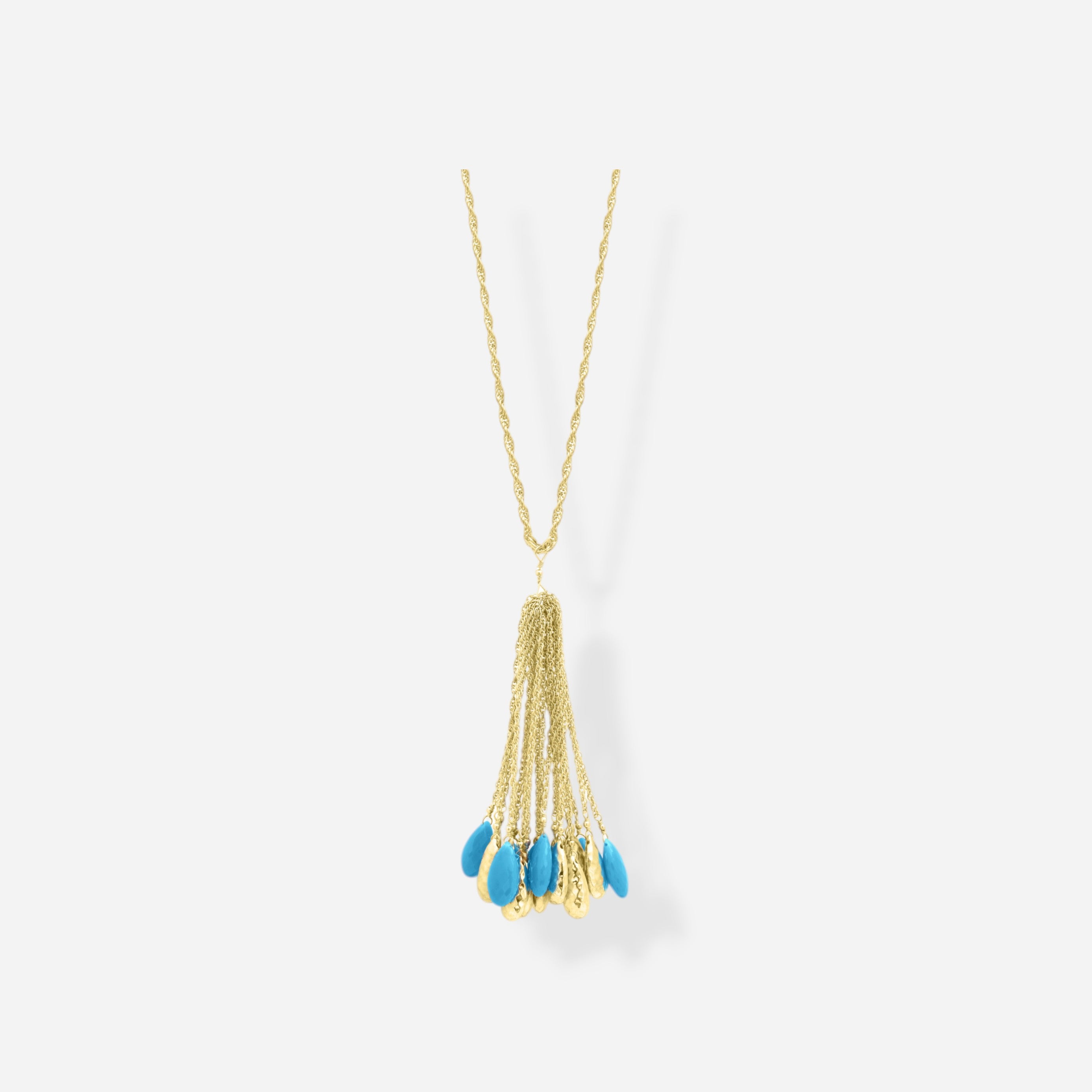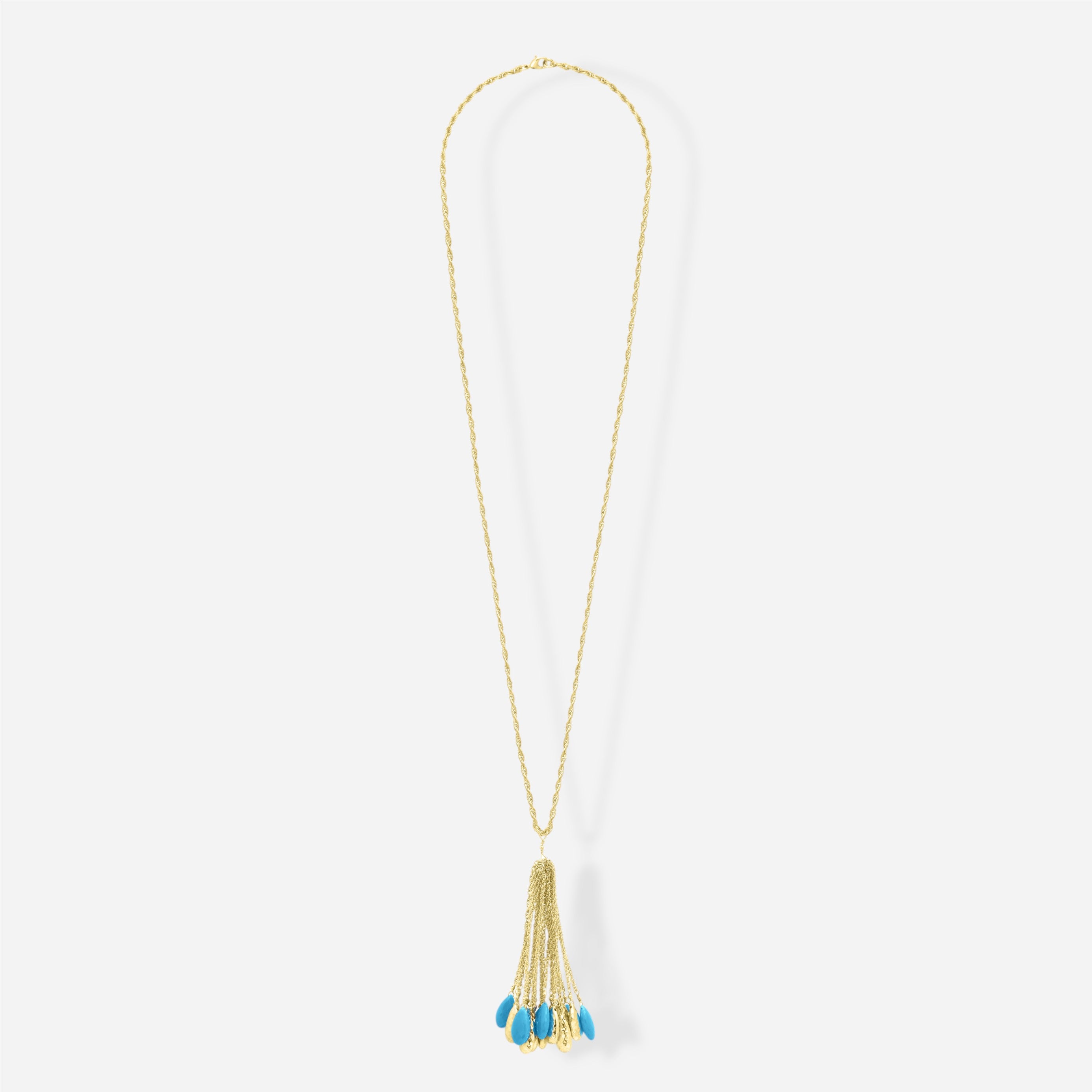 Ce collier long se distingue par sa ligne fine et son tombé délicat, sublimé par un pendentif en mouvement.